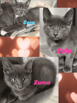 These 9-week-old adorable kittens are full of love, playfulness, and purrs! Zero (male), Zola, and Zuma (females) are precious little ones ready to bring endless joy and snuggles to their forever families. They’re sweet, social, and full of kitten fun — the perfect addition to any home that’s ready for some extra love (and a little bit of mischief).
